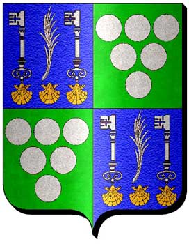 coquillages d’or rangées en fasce. Au 2 et 3 de sinople, à 3 besants