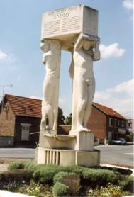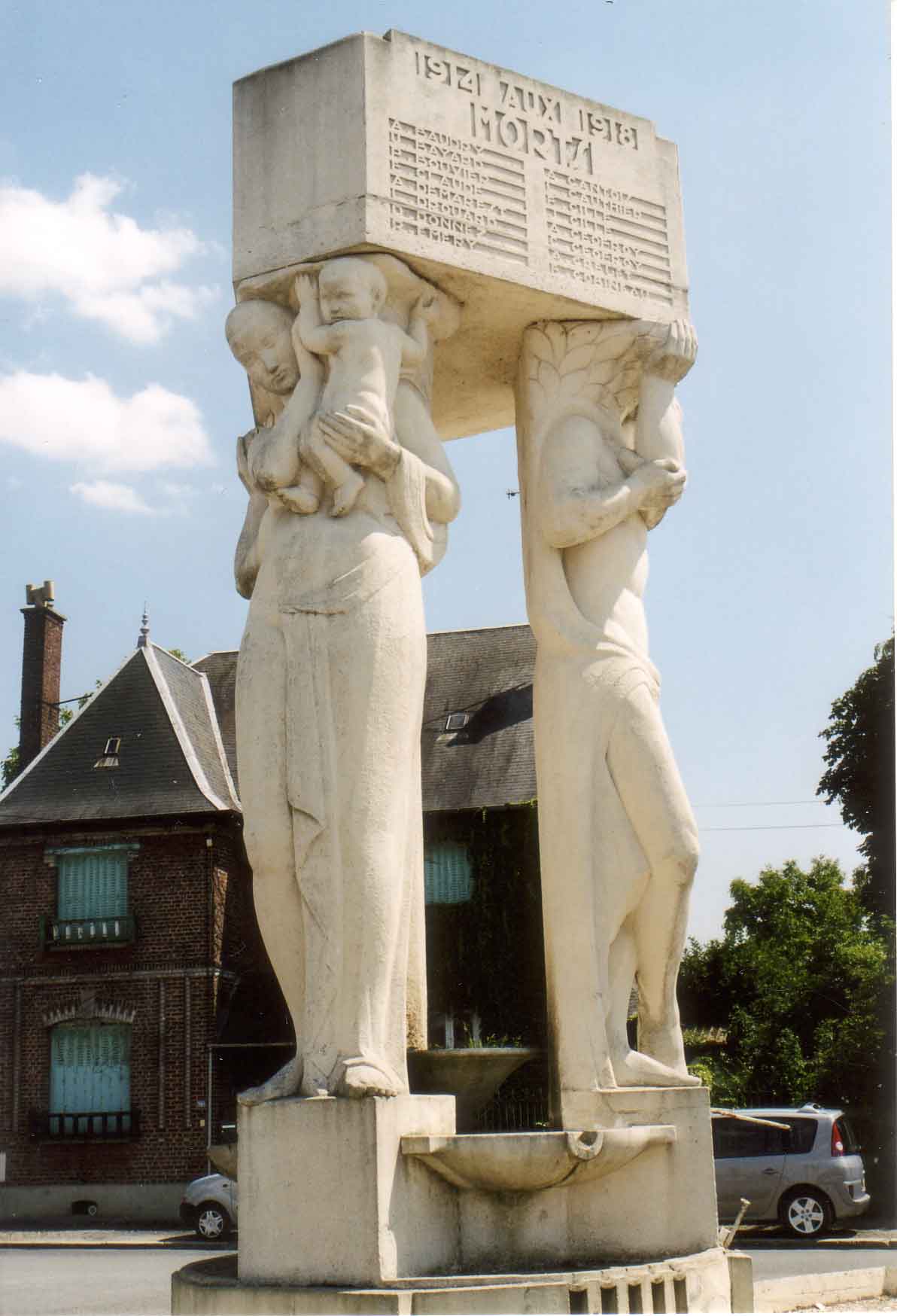aux morts représentant un homme et deux femmes. L’une d’elle