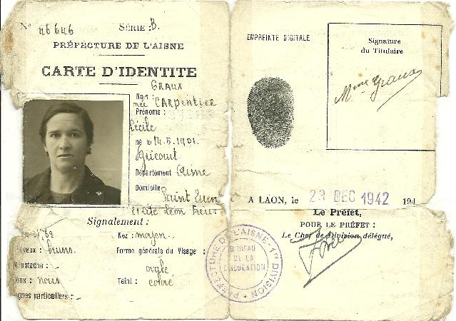 Cécile Marie CARPENTIER ° 14/05/1901 à Gricourt ; 02355 ; Picardie ; France, 41 ans Conjoint(s) : Georges Désiré GRAUX décédée le 26/9/1990 à Saint-Quentin